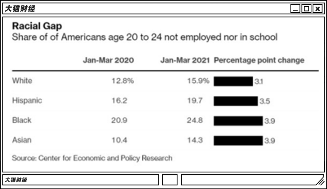 根据美国官方的统计:今年前三个月,约有 380 万名 20- 24 岁的美国人没有就业、接受教育或培训,总数相当于全美20%的年轻人。