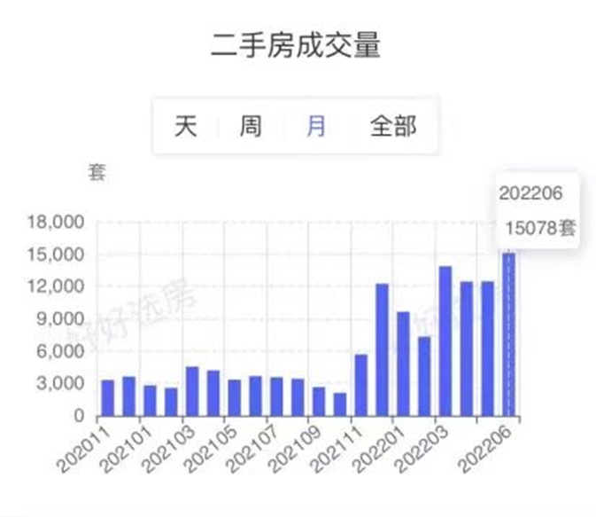 6月新房单月成交已经超过1.6万套,创历史新高;二手房成交实现3连涨,本月突破5000套。